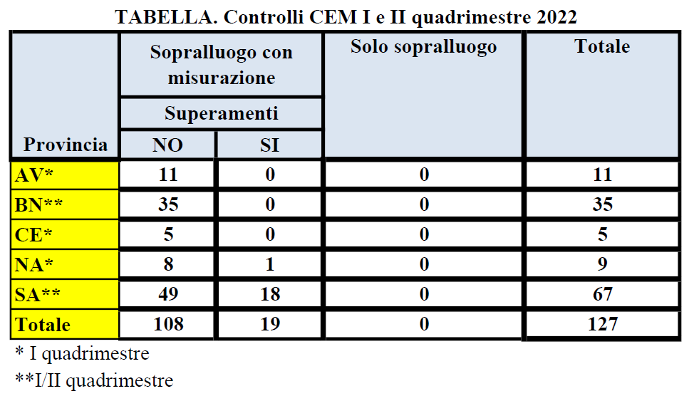 Vigilanza e controllo sulle sorgenti di campi elettromagnetici a bassa e alta frequenza. Gli interventi di controllo e vigilanza consistono nello svolgimento di sopralluoghi conoscitivi e nell'effettuazione di rilievi strumentali di campo elettromagnetico, al fine di verificare il rispetto dei valori di riferimento normativo (limiti di esposizione, valori di attenzione ed obiettivi di qualità) previsti dalla normativa nazionale vigente.