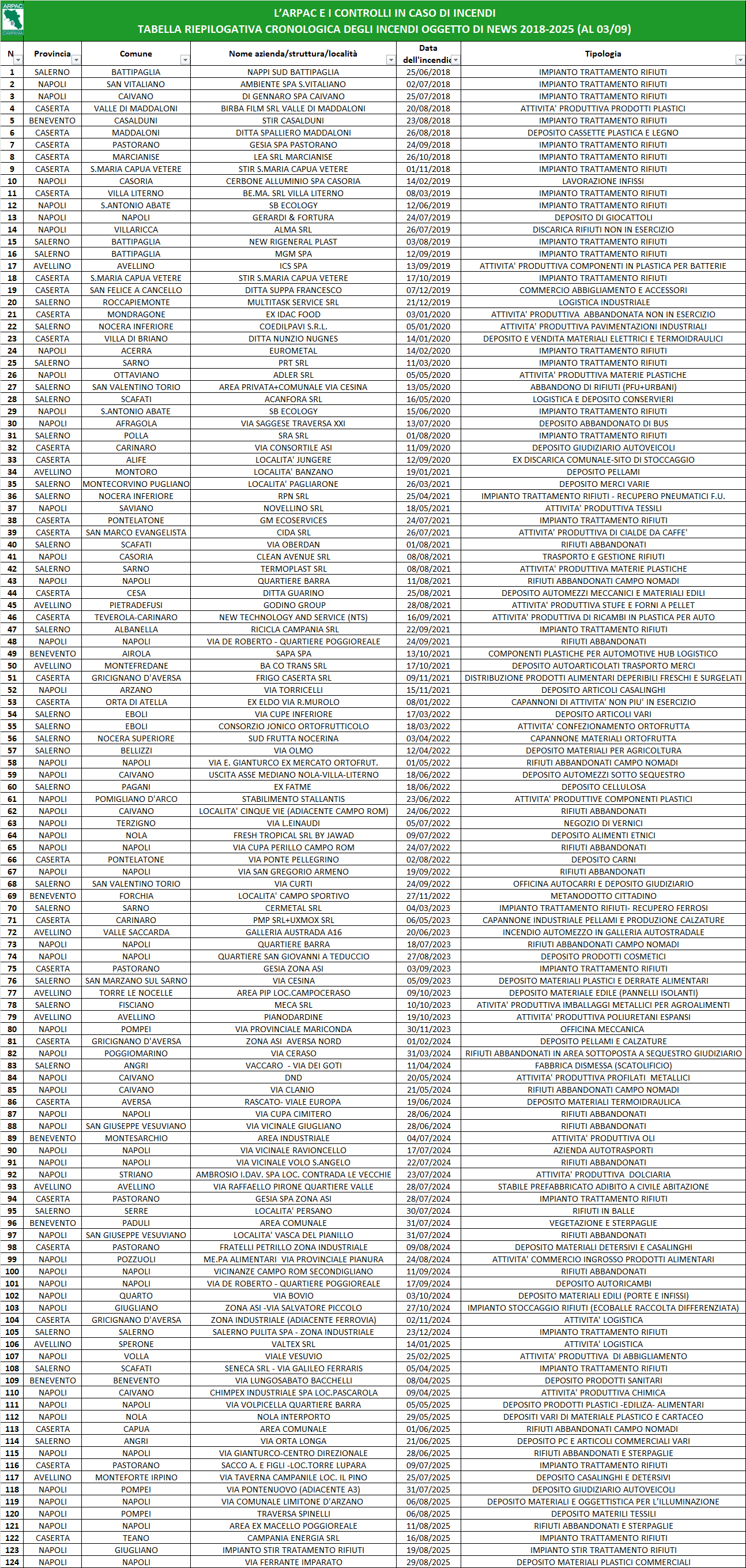 Come è ben noto, nel biennio 2017/2018, in Campania e in tutto il territorio nazionale, si è avuta una preoccupante impennata di incendi che hanno riguardato, in particolare, gli impianti autorizzati alla gestione dei rifiuti.
